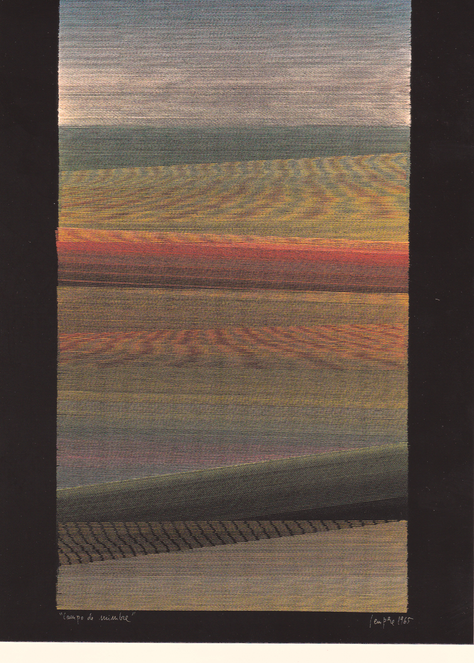 Impresionante ciudad la de Cuenca, de la que no encuentras indicadores de su existencia hasta 70 km antes de llegar y que aparece de pronto como un dragón de dos cabezas. Todo nos ha sorprendido, sus gentes amables y generosas, sus platos bien rellenos, las piedras que hablan, lo inexpugnable del lugar, las hoces que envuelven, la historia confusa contada por inconformistas en la noche, la mezcla de estilos sucesión de imposiciones; todo nos ha sorprendido. Y especialmente un museo, el de arte abstracto, fruto del tesón de los importantes artistas que lo crearon, colgado de la piedra, impresionante. De allí traemos los colores para nuestras ideas. Una colección de paisajes de Eusebio Sempere, entre ellos «Campo de mimbre» (foto) inspira nuestros platos y enraiza con nuestra idea de pura cepa.